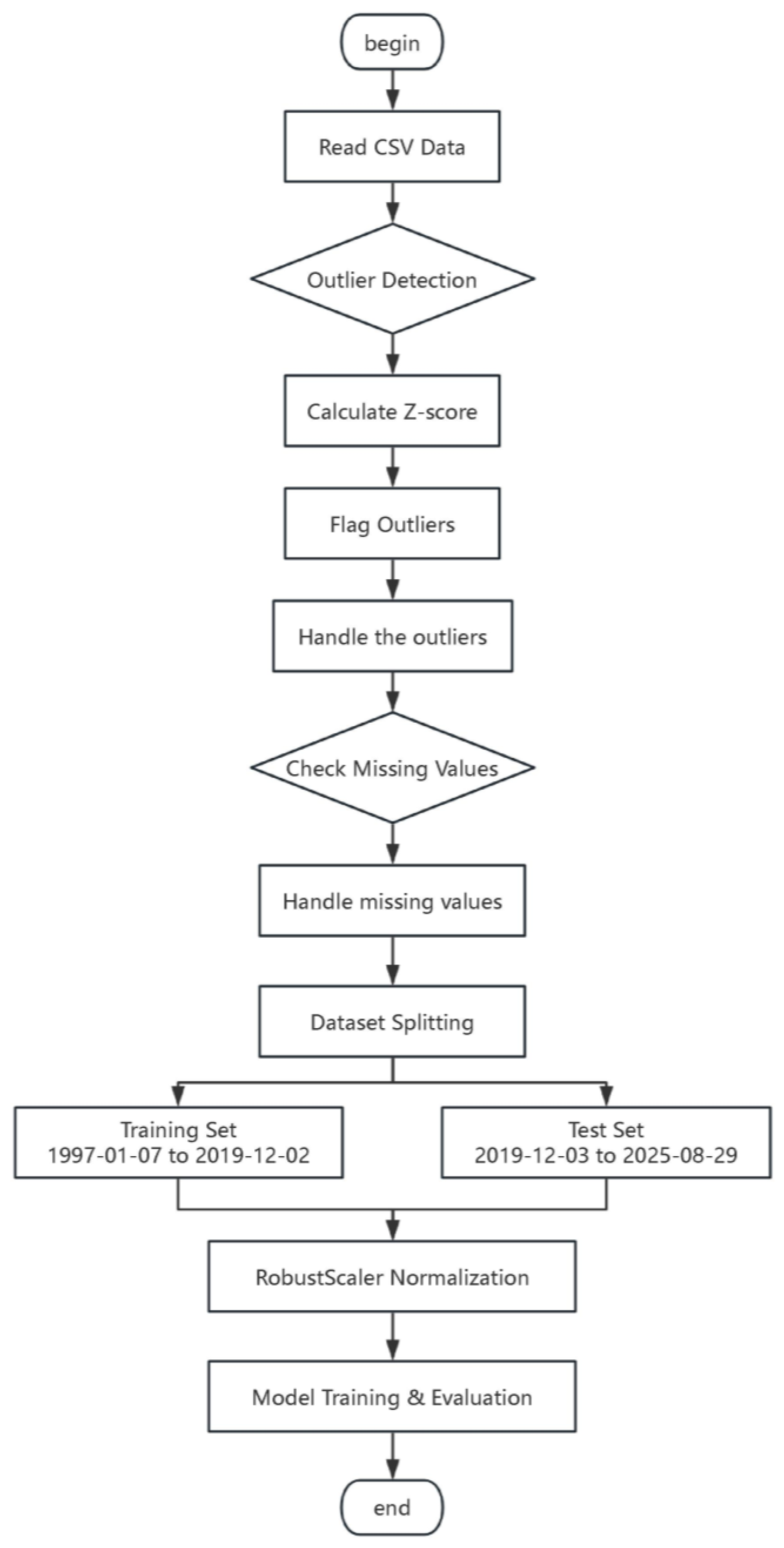 Supplementary Materials. The data span a long historical period, with the training set covering 7 January 1997, to 2 December 2019, comprising 5760 observations, and the testing set covering 3 December 2019, to 29 August 2025, comprising 1439 observations. This division ensures that the models are trained on sufficient historical information while being evaluated on a more recent period to assess their predictive performance.