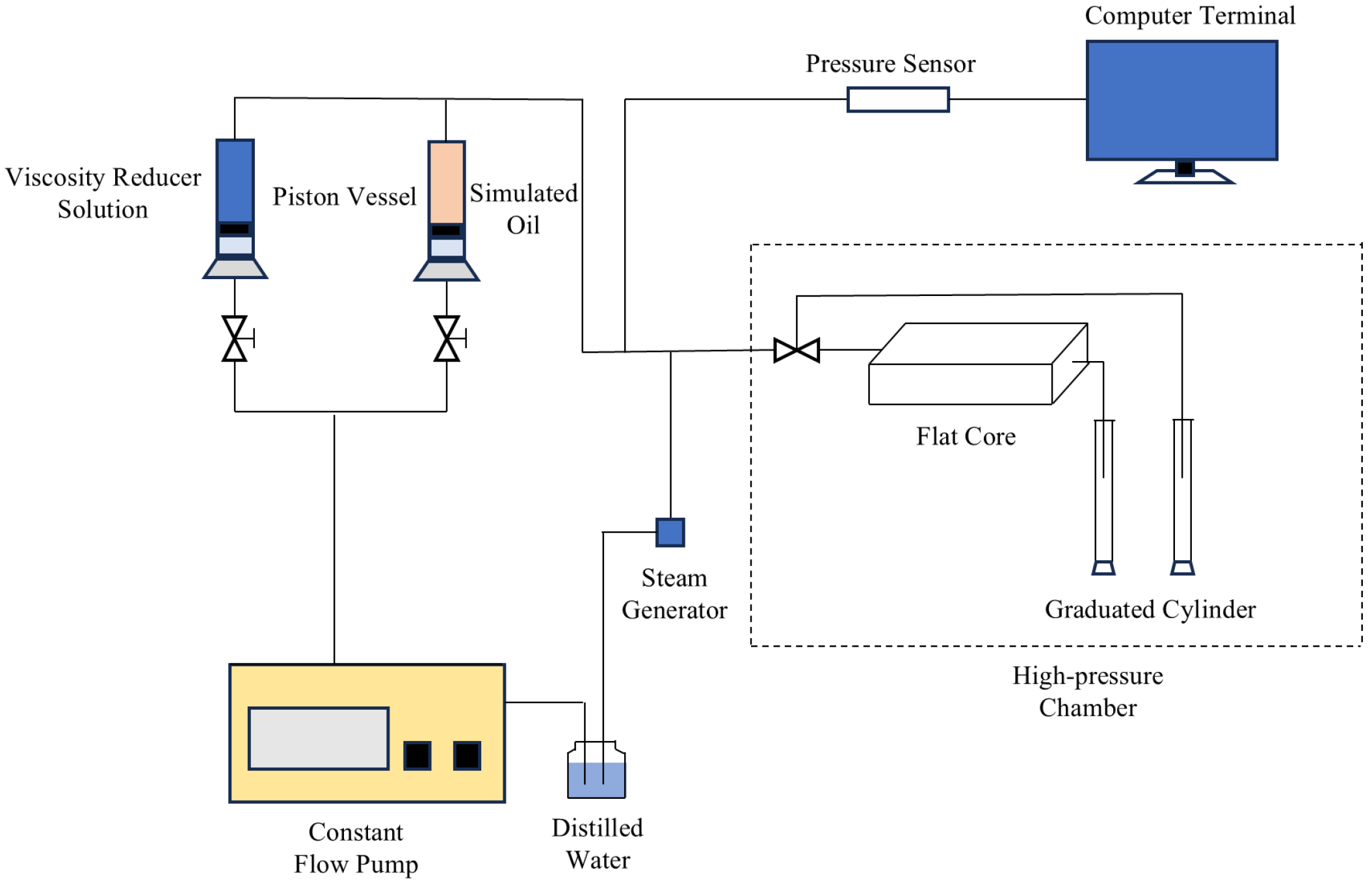 - It is worth noting that this study aims to establish an evaluation system for the effectiveness of viscosity reducers. However, the investigation on the timing of flooding conversion is limited to the viscosity reducer used in this study, and further experimental investigations are required for the exploration of other types of viscosity reducers. Meanwhile, water-soluble tracers can be added during the experiment to determine the amount of oil contacted [35]. Additionally, after the experiment, it would be of great significance to cut cross-sectional thin sections along the core and measure the average oil saturation at various positions of the core.
