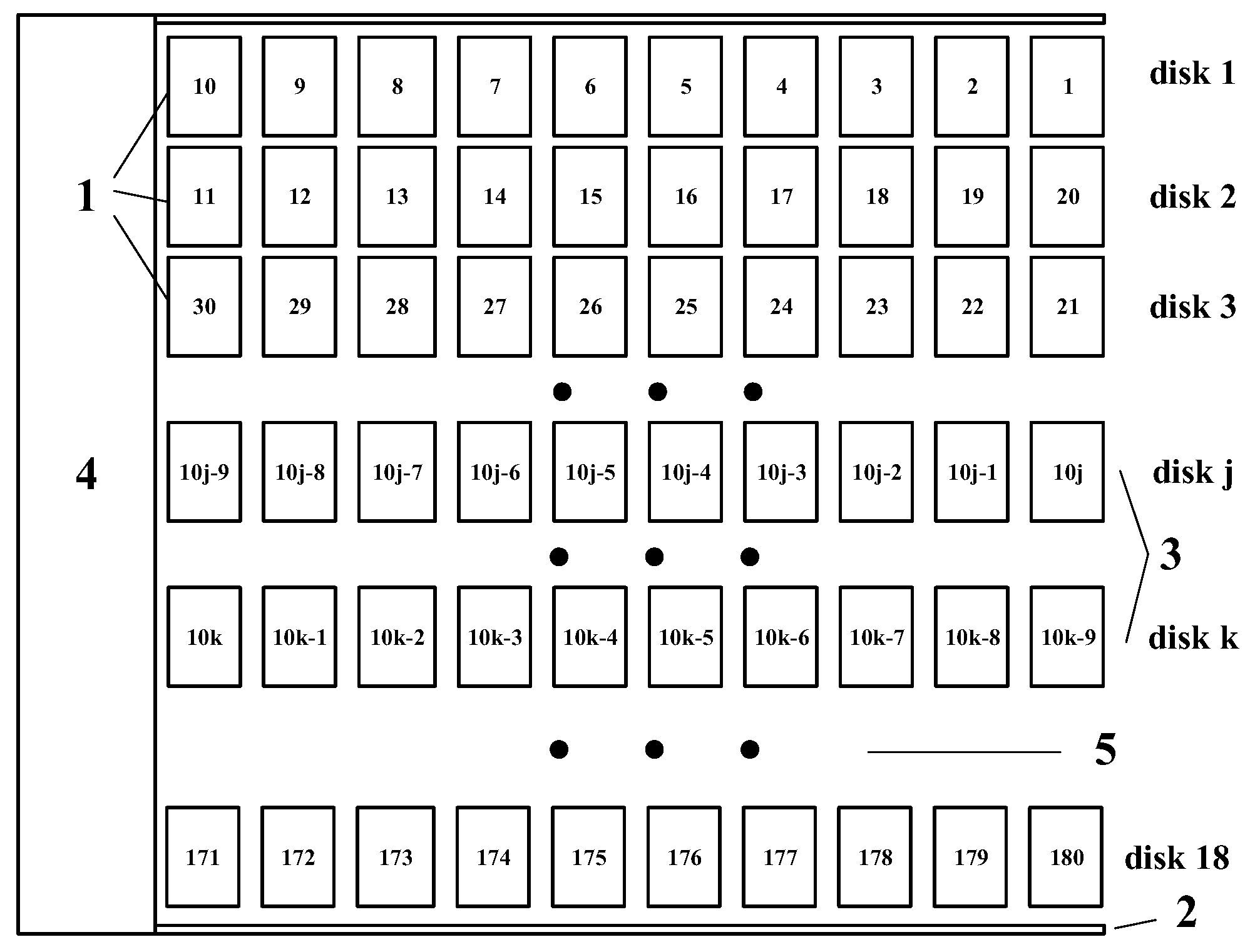 Figure 2 shows, the mutual capacitance matrix and mutual inductance matrix between conductors in disk k can be obtained through angular symmetry from the mutual capacitance matrix and mutual inductance matrix between conductors in disk j. According to the above correspondence, the 30 × 30-dimensional mutual capacitance matrix obtained by simulation can be expanded to a 180 × 180-dimensional capacitance matrix