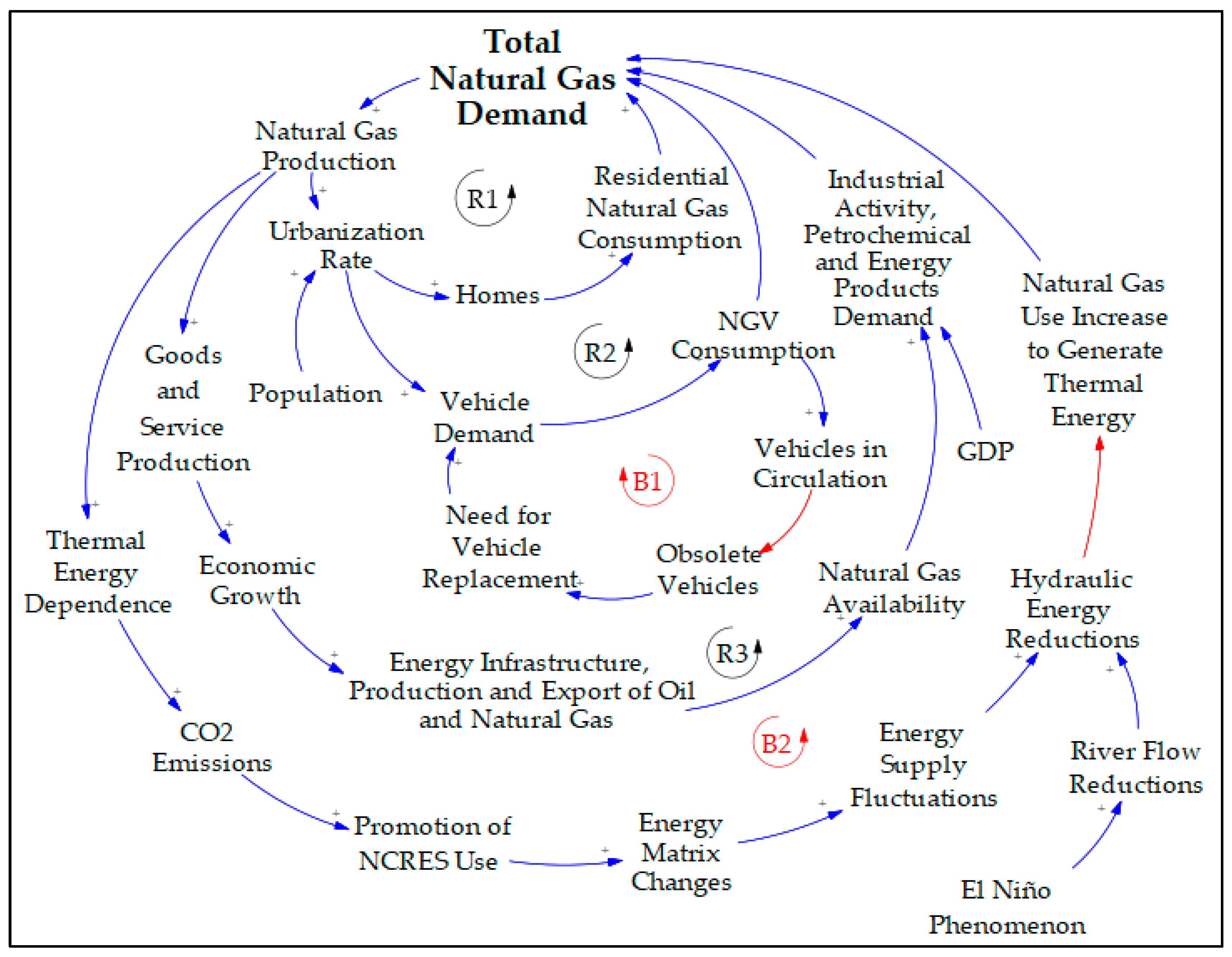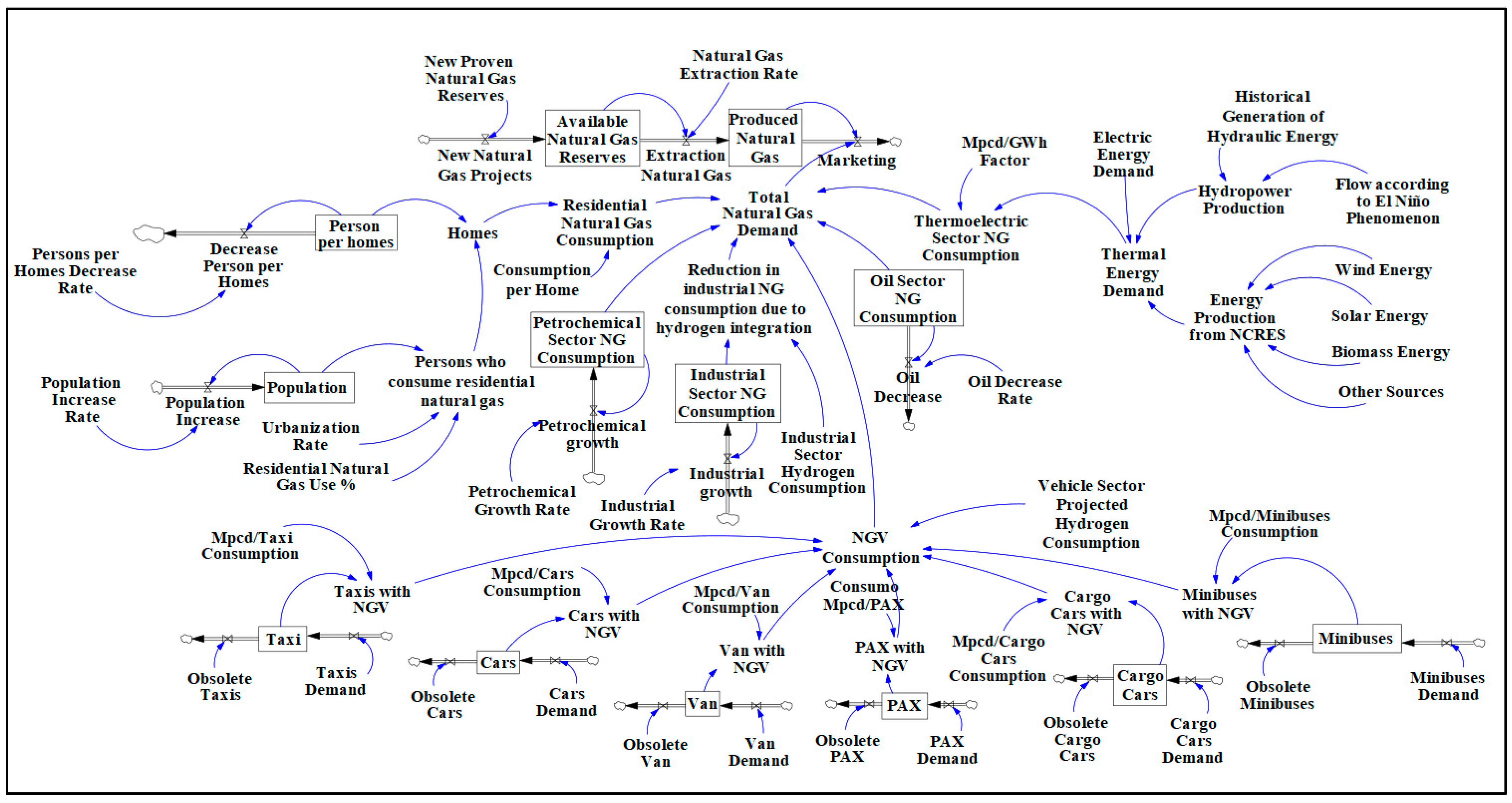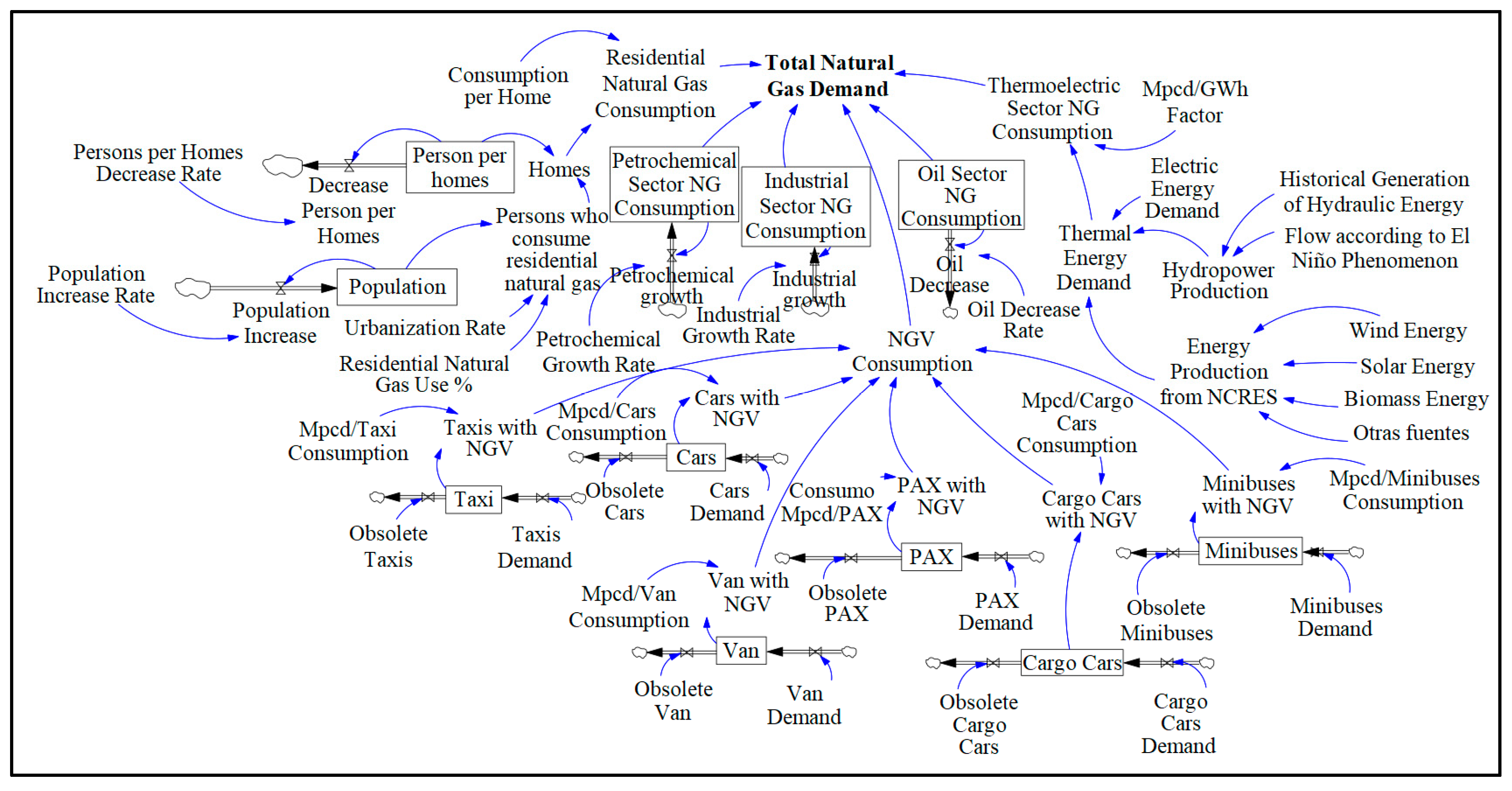 Several studies have applied System Dynamics to the analysis of natural gas systems in Colombia. For instance, Becerra-Fernández et al. modeled the natural gas supply chain to support sustainable growth policies [