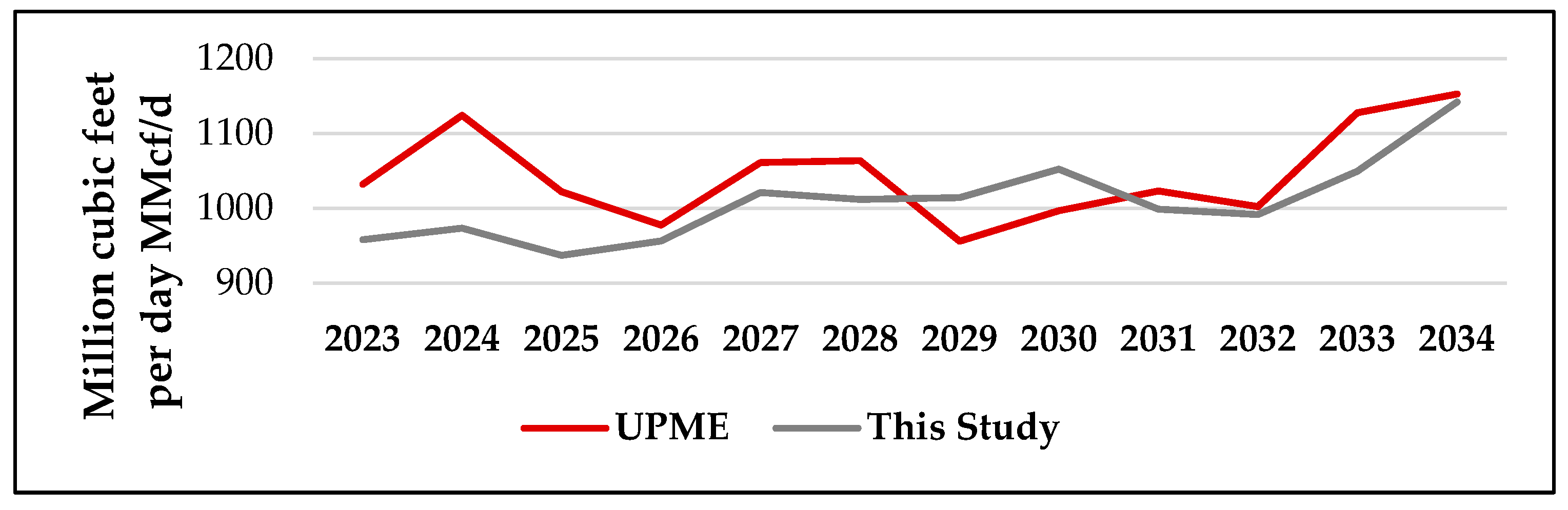 13]. The oil sector consumption is based on forecasts provided by Ecopetrol, related to natural gas use in the production of crude oil, natural gas, and refined products in Colombia.