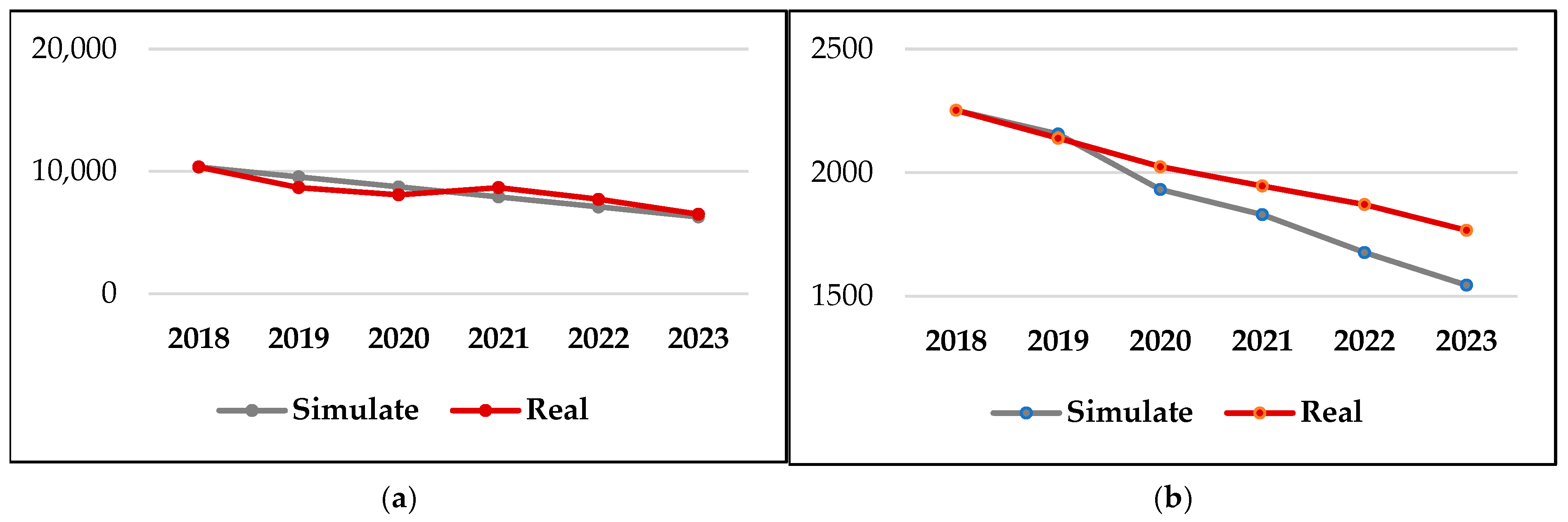 Figure 8 shows the comparison between real and simulated data since 2018.