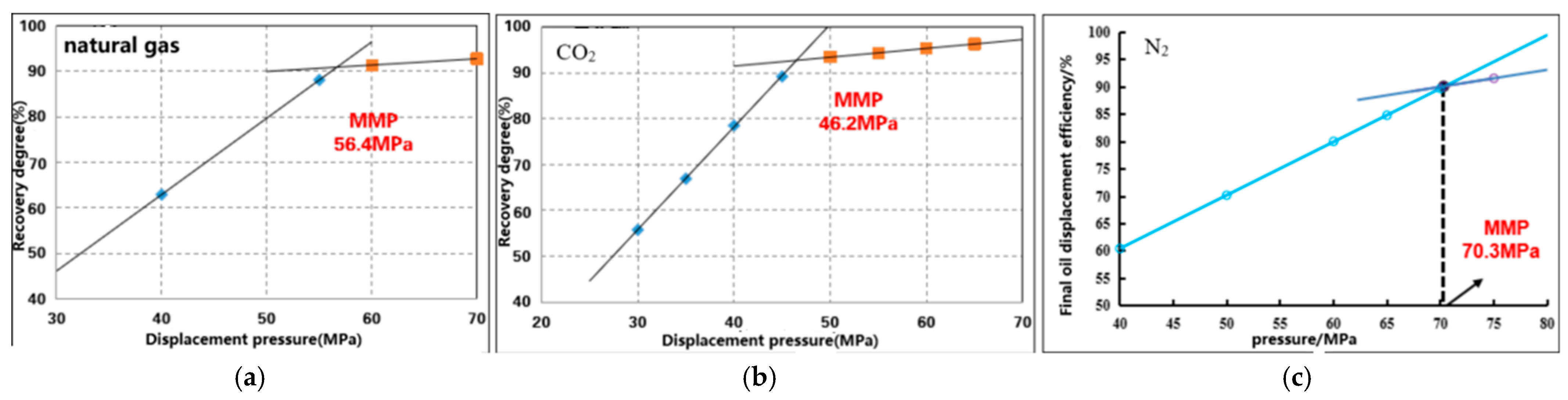 - Dindoruk, B.; Johns, R.; Orr, F.M., Jr. Measurement and modeling of minimum miscibility pressure: A state-of-the-art review. SPE Reserv. Eval. Eng. 2021, 24, 367–389. [Google Scholar] [CrossRef]