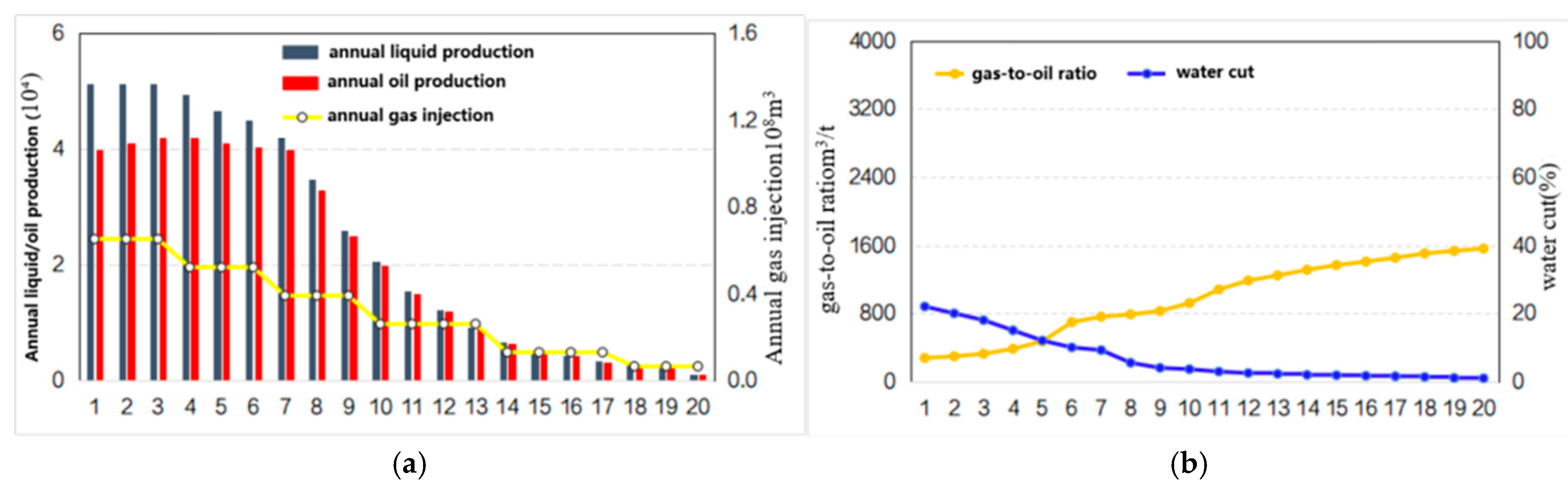 5.6. Impact of Gas Injection Gravity-Enhanced Miscible Displacement on Recovery Efficiency