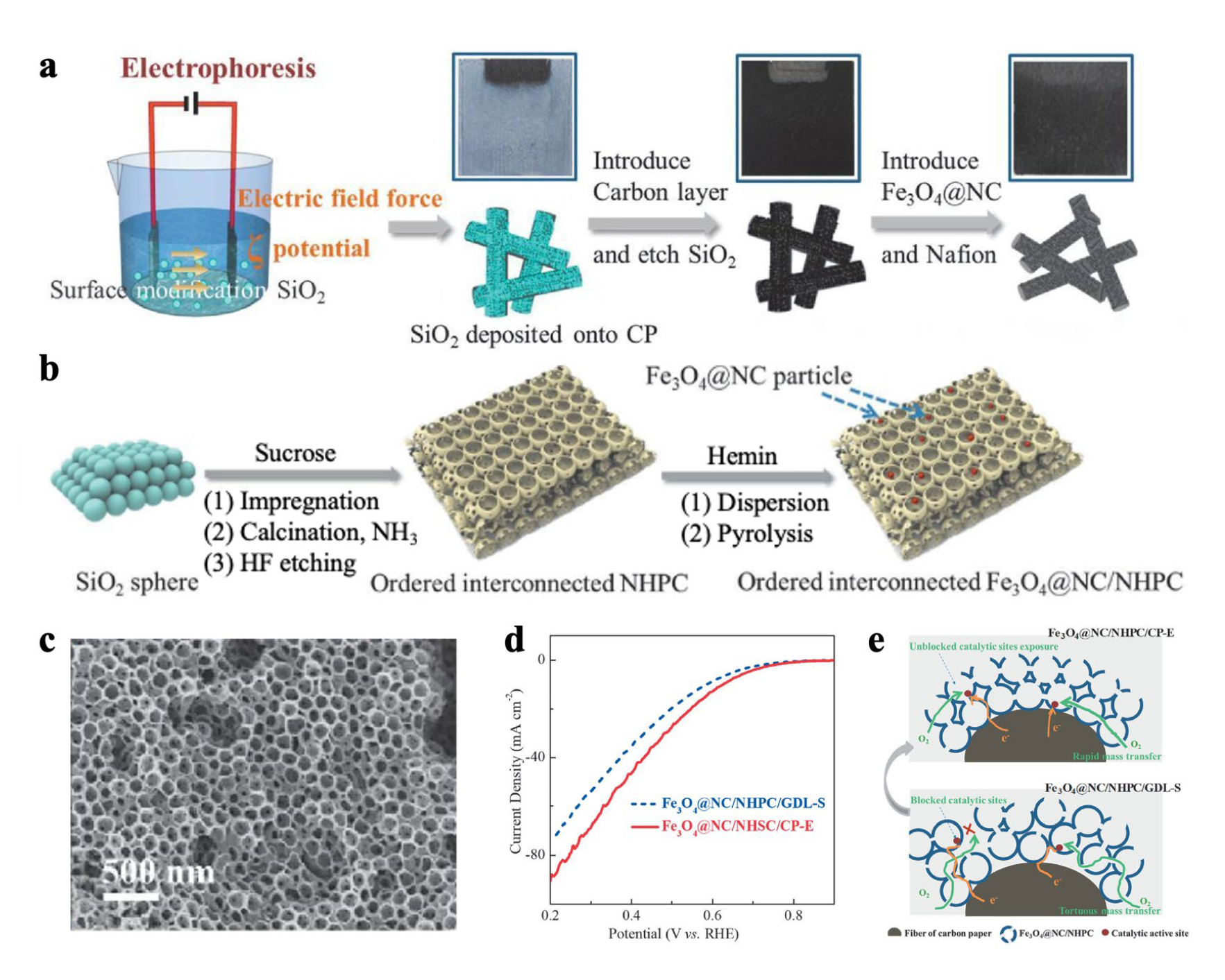 - Wang, Y.; Wu, M.M.; Wang, K.; Chen, J.W.; Yu, T.W.; Song, S.Q. Fe3O4@N–doped interconnected hierarchical porous carbon and its 3D integrated electrode for oxygen reduction in acidic media. Adv. Sci. 2020, 7, 2000407. [Google Scholar]