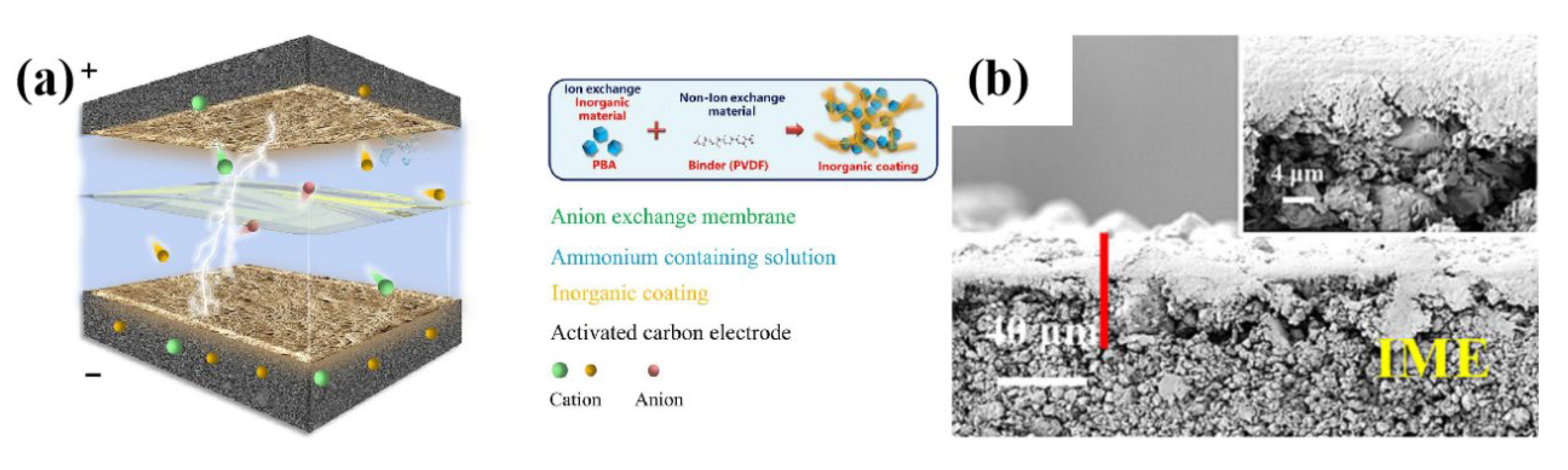 - Wang, Q.; Wu, Q.; Zhao, M.; Lu, S.; Liang, D. Prussian blue analogue based integrated membrane electrodes for desalination and selective removal of ammonium ions in a rocking-chair capacitive deionization. Chem. Eng. J. 2024, 482, 148923. [Google Scholar] [CrossRef]