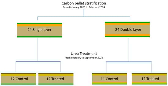 Measures were collected from February 2024 to September 2024 to assess the influence of urea treatment and to assess the effect of C pellet layering on “Control” groups.