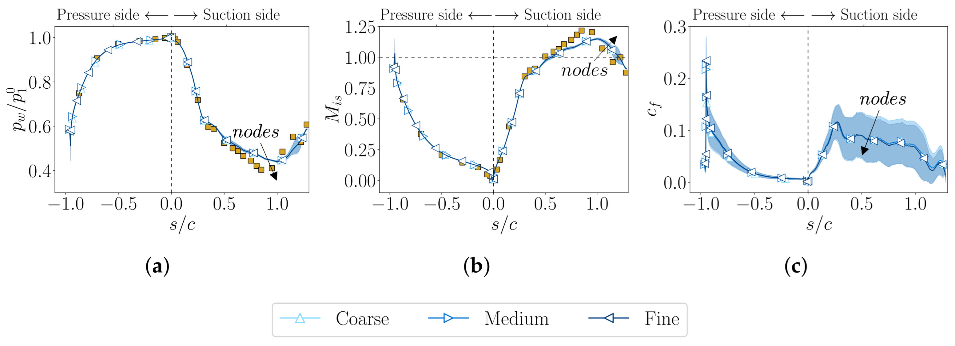 - De Vanna, F.; Benini, E. Wall-Modeled LES of a Transonic Gas Turbine Vane—Part II: Mach Number Effect and Losses Prediction. J. Turbomach. 2025, 147, 111016. [Google Scholar] [CrossRef]