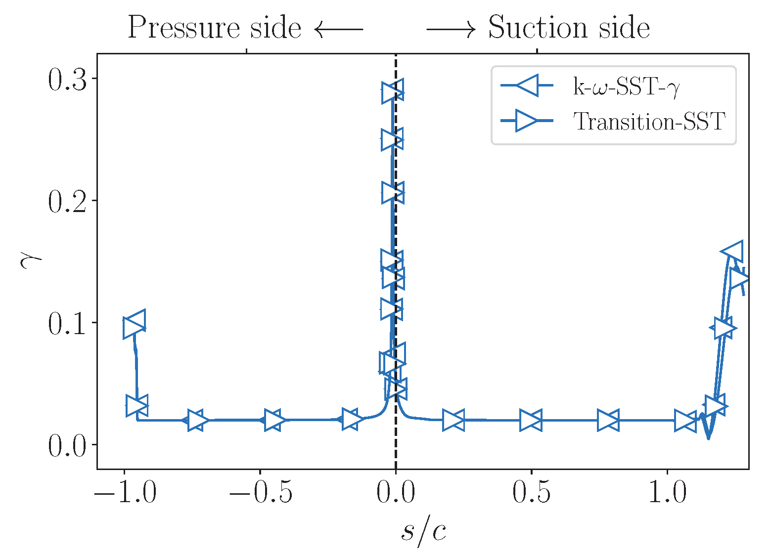 - Rosafio, N.; Lopes, G.; Salvadori, S.; Lavagnoli, S.; Misul, D.A. RANS Prediction of Losses and Transition Onset in a High-Speed Low-Pressure Turbine Cascade. Energies 2023, 16, 7348. [Google Scholar] [CrossRef]