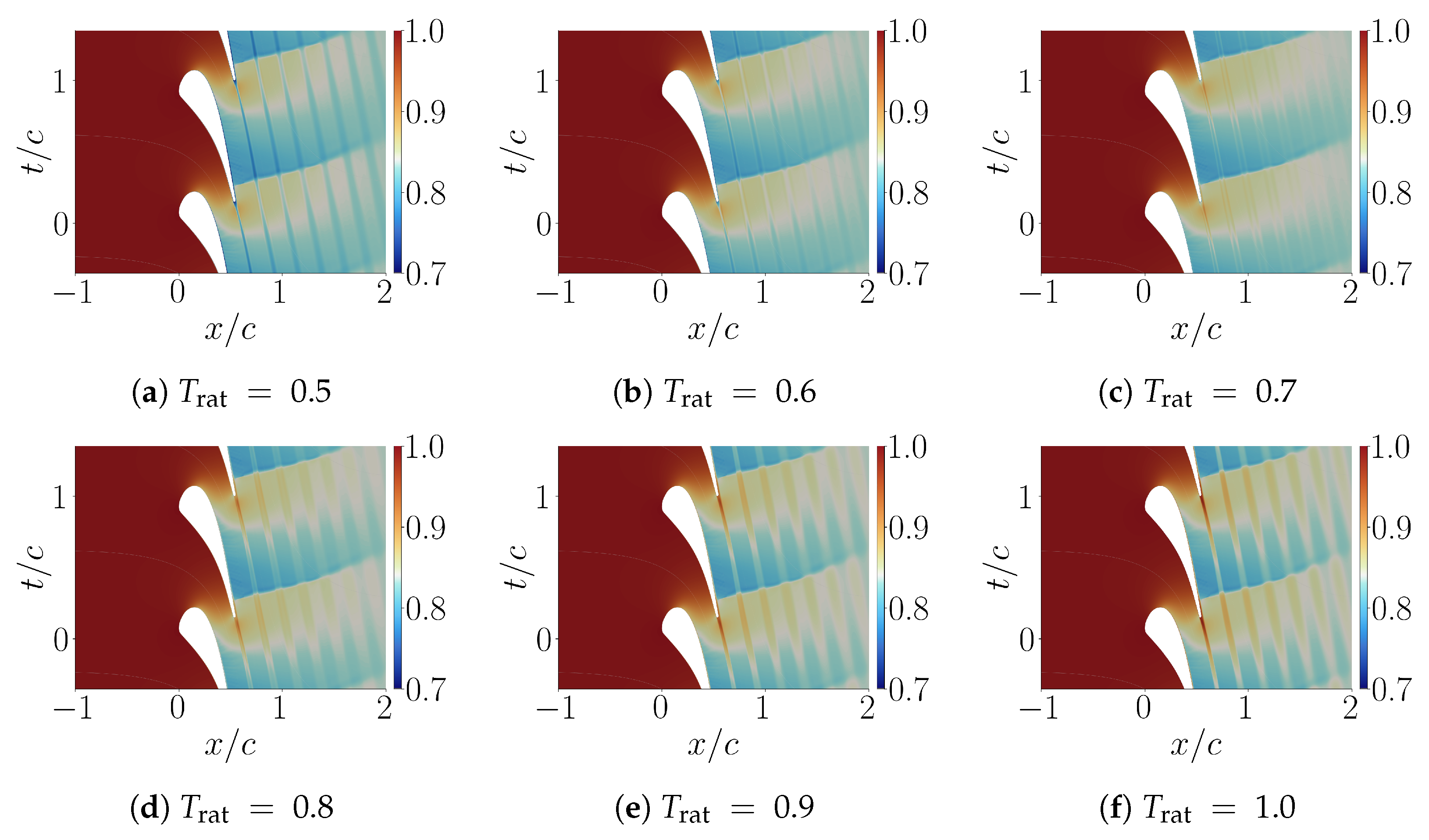 - BiAn, X.; Wang, Q.; Su, X.; Yuan, X. Interaction mechanisms of shock waves with the boundary layer and wakes in a highly-loaded NGV using hybrid RANS/LES. Chin. J. Aeronaut. 2020, 33, 149–160. [Google Scholar] [CrossRef]