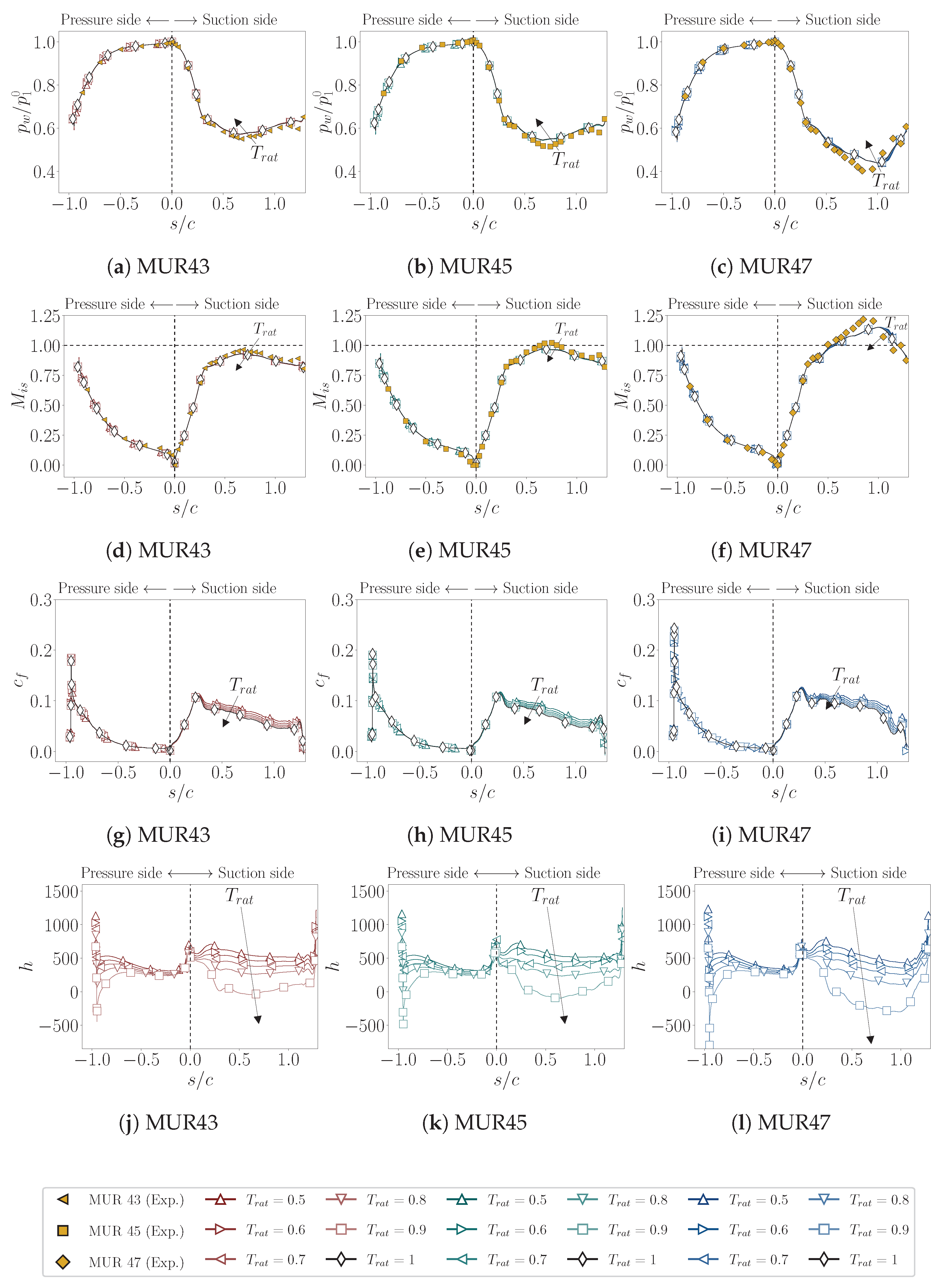 - De Vanna, F.; Benini, E. Impact of wall cooling on transonic gas turbine stators aerothermodynamics: Insights from Wall-Modeled LES. Appl. Therm. Eng. 2025, 272, 126396. [Google Scholar] [CrossRef]