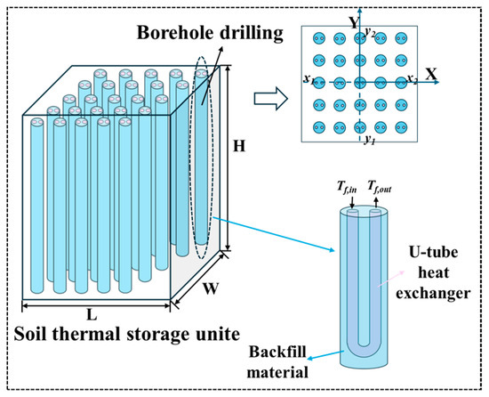 4]. To address the challenge of insufficient heat supply during cold seasons, seasonal thermal energy storage (STES) technologies have gained increasing attention. By integrating multiple heat sources at the regional or urban scale, these systems establish sustainable thermal reserves capable of supplying stable heat during the heating season. STES enables the temporal redistribution of thermal energy across seasons by efficiently storing surplus heat during non-heating periods and releasing it during heating periods. This approach helps balance the thermal energy supply–demand mismatch and mitigate fluctuations in the broader energy system. Among various STES technologies, Borehole Thermal Energy Storage systems (BTES)—which integrate multiple clean heat sources such as solar energy and groundwater to establish a “store in summer, use in winter” recycling model—are increasingly recognized as a promising pathway for achieving clean and sustainable building heating, and have garnered growing attention in recent years [