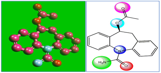 Medicinal compounds and biomaterial waste generally contain heterocyclic rings, and benzene exhibits environmental properties that can replace the toxic organic corrosion inhibitors [20,21]. There have been some reports on the use of expired pharmaceuticals and drugs as corrosion inhibitors, analyzing their anticorrosive efficiency towards MS [22], but, meanwhile, the challenges of the poor stability of expired drugs have also been outlined [23]. However, no reports have been found on the use of expired eslicarbazepine acetate (ESLD) as a sustainable corrosion inhibitor, which underscores the need for this research. From a healthcare perspective, two factors should be considered when using expired ESLD as a corrosion inhibitor. First, to the best of the authors’ knowledge, there are no explicit data on the toxicity of expired ESLD and its potential impact on both the environment and human health. Second, corrosion inhibitors are typically added to thermosetting materials along with other ingredients and then crosslinked, which significantly reduces the possibility of ingredient diffusion through the crosslinked structure. Actually, there is no toxicity, and it is able to inhibit corrosion.