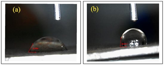 Water contact angle measurement. (a) Bare and (b) inhibited system.