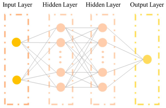 The multilayer feedforward neural network is a fundamental neural network model, also known as the deep feedforward neural network or multilayer perceptron (MLP). The model consists of multiple layers of neurons. Each layer is fully connected to the next [26,27]. The multilayer feedforward neural network is a forward-structured network, meaning that information flows from the input layer to the output layer without any cycles or feedback connections.