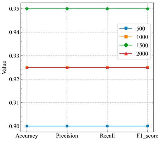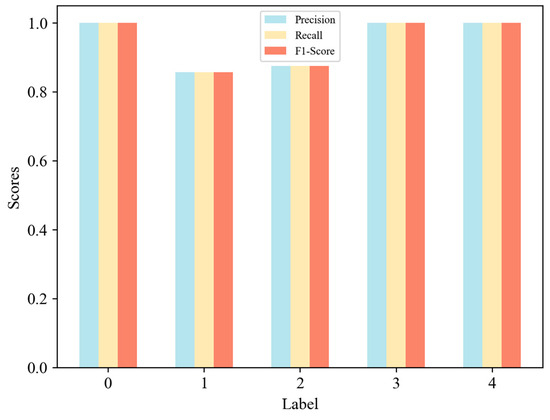 Four different evaluation metrics (accuracy, precision, recall, and F1 score) were used to ensure a more precise assessment of the model’s predictive ability. These specific and comprehensive metrics allow for a thorough and extensive evaluation of the model’s performance. The closer these values are to 1, the better the predictive performance. The formulas for these four metrics are as follows