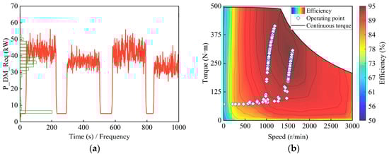 where TDM_Max represents the maximum torque of the drive motor, N·m; ωDM represents the drive motor speed, r·min−1; and TDM represents the drive motor torque, N·m.