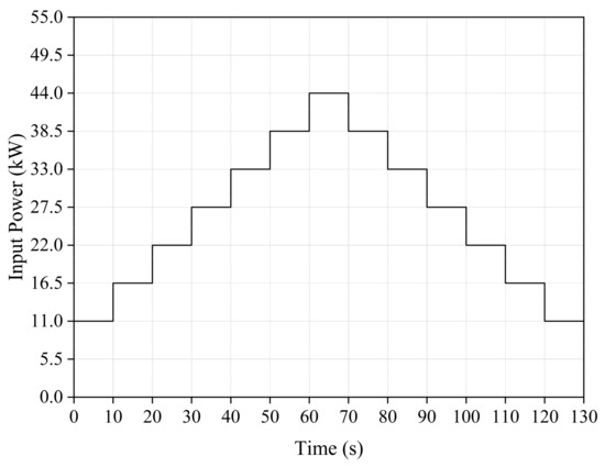It is known that the water pump flow rate is proportional to its rotational speed, and the flow rate equation can be expressed as follows: , where (r·min−1) is the rotational speed of the water pump, and (L·r−1) is the displacement of the pump. The dynamics of the system can be represented as a first-order system: