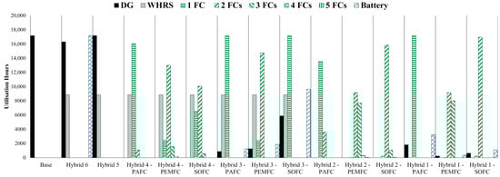 In Table 2, the weights and volumes of PEMFCs are remarkably lower than solely D/Gs and configurations of D/Gs and other types of FCs. Since the fuel-reforming modules of the FCs are integrated with the rest of the system, SOFC and PAFC weigh more and occupy more space. On the other hand, the H2 production system for PEMFC must be implemented externally for the examined product.