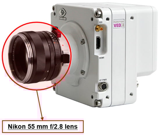VEO-E Phantom 310-L high-speed camera, equipped with a Nikon 55 mm f/2.8 lens.
