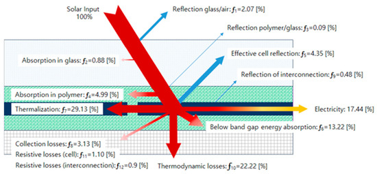 Figure 8. Contribution of heat and reflection loss and the rate of PV energy loss [29].