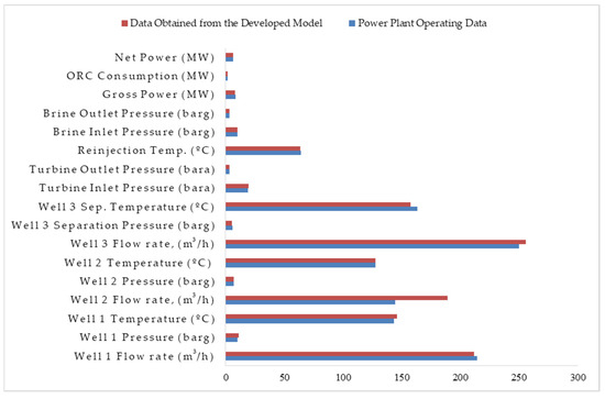 A large number of models representing the operational periods of the plant, similar to Figure 10, could be produced from the data obtained through the calculation method. It is understood that the innovative calculation method can dynamically model the plant’s different operating conditions and produce results with very low error rates. In this context, analyses can be performed using data from different geothermal plants with the applied method.