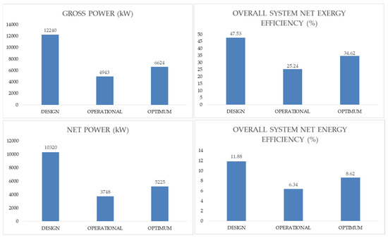 - With the optimal operating conditions obtained through the developed innovative calculation method, a net power increase of 1477 kW was achieved. This resulted in a net power increase of 39.41% for the examined geothermal plant. The exergy efficiencies of the equipment operating with low exergy efficiency under operational conditions were increased after optimization, resulting in overall plant exergy and energy efficiencies of 34.62% and 8.62%, respectively. By optimizing the operating conditions with the calculation method, the reinjection temperature was reduced to 70.33 °C, close to the design value, allowing for greater energy and exergy inputs to the plant.