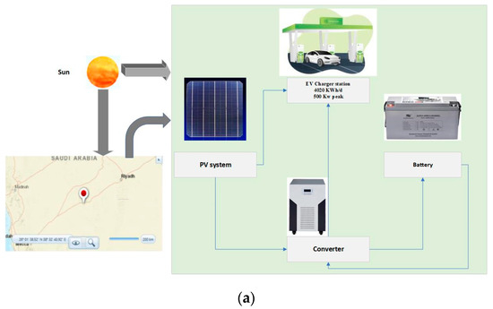In Saudi Arabia, several related publications have attempted to model and design electric vehicle charging stations. In Ref. [1], the use of EV charging stations (EVCSs) in off-grid areas was suggested. A unique off-grid strategy that combines renewable energy resources to supply clean electricity for EV charging stations was investigated techno-economically in that study. With the use of distance restrictions and economic criteria assessment metrics, the strategy was contrasted with the alternative option of grid extension. The findings of comparative and optimization research showed that the best standalone hybrid charging station was a cost-effective, environmentally responsible, and sustainable solution compared to grid expansion.