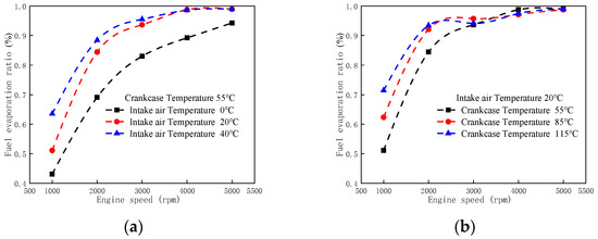 The influence of on the fuel evaporation rate is related to engine speed, and this correlation weakens as the speed increases. The increase in crankcase temperature promotes fuel evaporation.