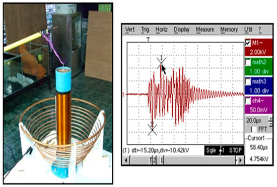 15]. In 2010, a cost-effective high-performance transformer of Tesla was constructed and designed to test an insulator. The transformer output was designed at 500 kV. This article presents the results of the experimental simulations from the transformer of Tesla to suit the main design parameters [