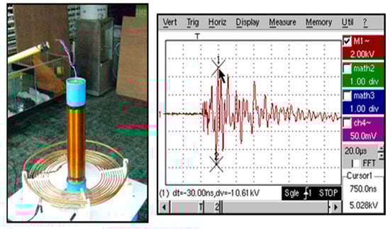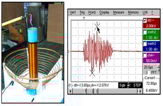 - Plangklang, B.; Apiratikul, P.; Boonchiam, P. A Low-Cost High Performance Tesla Transformer for testing 115 kV Line Post Insulator. In Proceedings of the 2006 International Conference on Power System Technology, Chongqing, China, 22–26 October 2006. [Google Scholar]