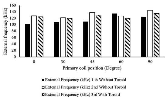 Comparison of the external frequency with the primary coil placement at the adjusted position with 8-round binding for each type.