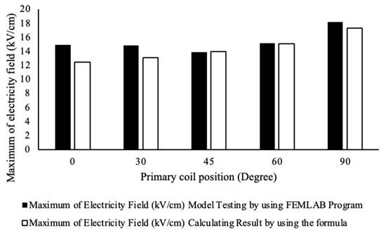 | Primary Coil Position (Lp) | Maximum of Electricity Field (kV/cm) |