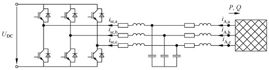 Two-level three-phase grid-tied inverter with LCL filter configuration.