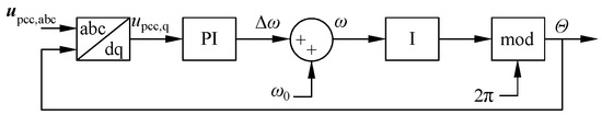 To keep the quadrature axis reference at the pcc at zero for grid synchronization, a synchronous reference frame PLL loop according to Figure 6 is applied [9,49]. Beyond this introduced PLL algorithm, any type of PLL is conceivable in combination with the LCL inverter model and the ENM.
