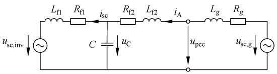 The electric circuit diagram of the basic LCL filter neglecting damping resistors is displayed in Figure 2. The explicit equation of state for the grid-sided mesh is
