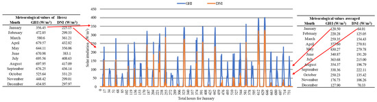 - As previously indicated, the solar radiation values are averaged directly from the TMY, with consideration given to the daylight hours covered by each of the months;