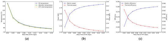 Gorouh [11] carried out a parametric study that yielded results indicating that the sensitivity of thermal power to the HTF inlet temperature exceeds that of electrical power. Additionally, an increase in the mass flow rate of the HTF leads to an enhancement in the electrical and thermal power output of the collector, while a decrease in the HTF outlet temperature is observed. The increase in the difference between the HTF temperature and the ambient temperature has a significant impact on the thermal efficiency.