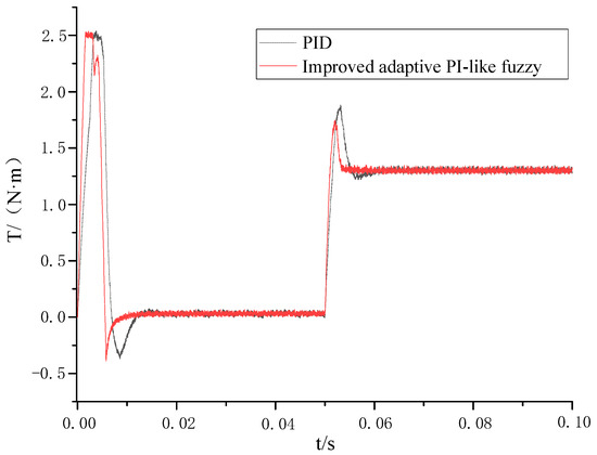 Comparison of torque response waveforms between PID control and improved adaptive PI-like fuzzy control.