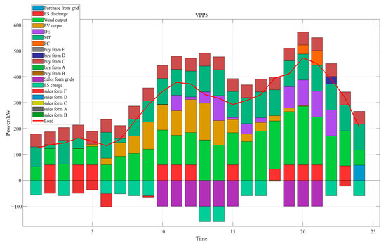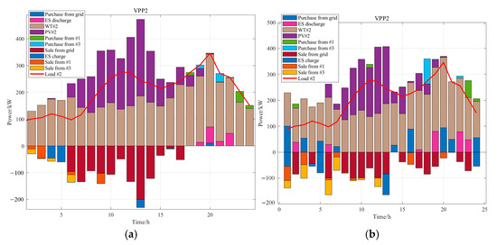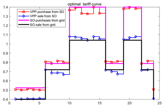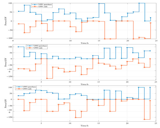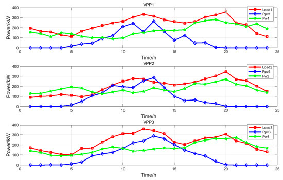 - Model 1: This model dispenses with day-ahead forecasting, wherein the VPO does not establish dynamic lower-level pricing. Instead, it directly adopts the electricity prices from the distribution network as presented in Table 3 to formulate the internal prices for the VPP cluster.