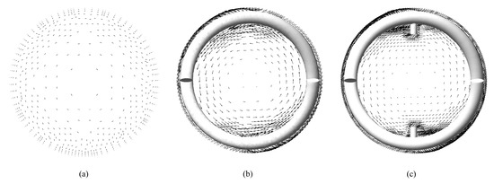 Vector field diagram of x–y plane longitudinal section. (a) Plain tube. (b) Tube with DSS inserted. (c) Tube with DSI inserted.