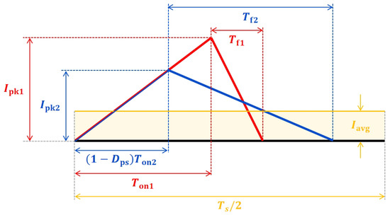 According to Figure 7, by expressing the current fall times and in terms of for both operating modes, the following equations hold: