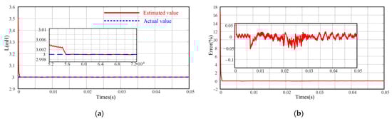 EKF-based inductance estimation parameters. (a) EKF-based inductance estimation results. (b) EKF-based inductance estimation error.