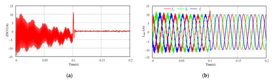The effectiveness of the ZSCC control strategy proposed in this paper under more extreme conditions, i.e., when the inductance of phase-to-phase inductance imbalance, is verified. The simulation results of the phase-to-phase inductance imbalance are shown in Figure 15.