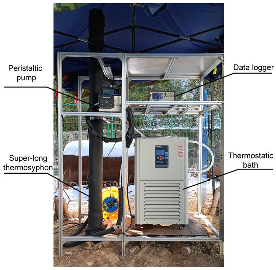 For the pavement de-icing, the use of thermosyphons is free of energy consumption. Zhang et al. [9] demonstrated the feasibility of a thermosyphon anti-freezing system for the airport runways at Beijing Daxing International Airport. The runways could be maintained free of ice and snow when the air temperature was above −4 °C. Zorn et al. [10] developed an CO2-thermosyphon system to keep an asphalt pavement from icing in Bad Waldsee, Germany. The experimental results showed that the surface was kept above 0 °C under the test conditions. In addition, Yu et al. [11] integrated a multi-loop CO2-thermosyphon with a bridge deck in Texas, USA, and the thermosyphon was connected with a ground heat exchanger to provide heat for de-icing. It was experimentally proven that the bridge deck surface was free of ice and snow as long as the air temperature was above −6.2 °C. Further, ground source heat pumps (GSHPs) with the incorporation of thermosyphons in borehole heat exchangers have been experimentally and theoretically investigated for providing heating to buildings [12]. The recent investigations revealed that the thermosyphon–GSHP system has a higher overall efficiency when compared with the traditional U-type or coil-type GSHP system. The long-term numerical analysis by Lim et al. [13] showed that a total energy consumption reduction of up to 10.3% was reached with the thermosyphon–GSHP system than with the traditional one based on the weather data in Seoul, South Korea. Additionally, super-long thermosyphon coupled GSHP systems applied in deep geothermal energy extraction for space heating in Taiyuan, China, have demonstrated significant application potential [14].