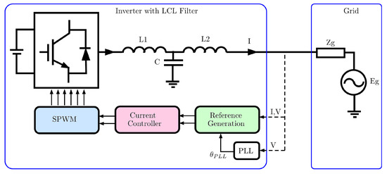 This section provides a theoretical background of filter characteristics to better understand the different filter design approaches incorporated in the literature. The filter is generally used to attenuate high-frequency harmonics, especially switching ripples generated by high-frequency PWM signals. Unlike the L filter, small increases in inductor values of an filter can attenuate the switching ripples significantly [20]. The detailed equivalent models of a passive filter and the control block diagram are shown in Figure 1, where the components can be characterised as follows.