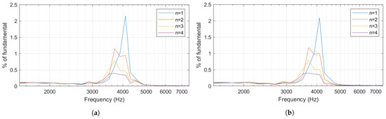 For each 200 Hz band, an amplitude at the middle of the frequency band was derived using Root Sum Square (RSS). Let is the amplitude of the spectrum at frequency f, and then the RSS value of band b () is given in (16). The same technique was used from 1 kHz to analyse the resonant frequency characteristics.
