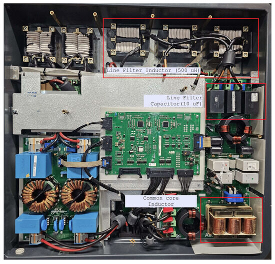 However, it was identified that commercial PV inverters have a common core inductor placed between the line filter and the grid to reduce the high-frequency noise emitting from external sources and within the inverter itself. Figure 15 is a photograph of the internal components of one of the inverters monitored in this study.