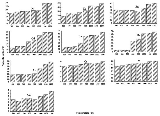 The volatilize of trace elements at various temperatures [104].