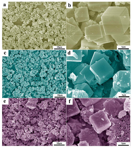 The morphological characterization of coal gangue during combustion. (A) uncalcined coal gangue, (B) uncalcined coal gangue, (C) 500 °C, (D) 700 °C, (E) 900 °C, and (F) 1200 °C [104].